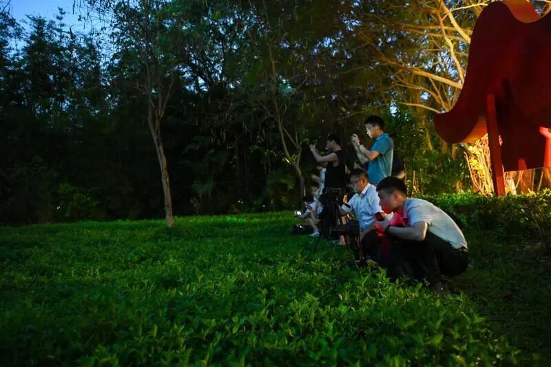 新华社照片,广州天河公园的一处萤火虫活跃地吸引了大量萤火虫爱好者前来观赏、拍摄。